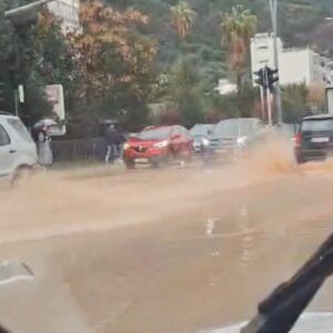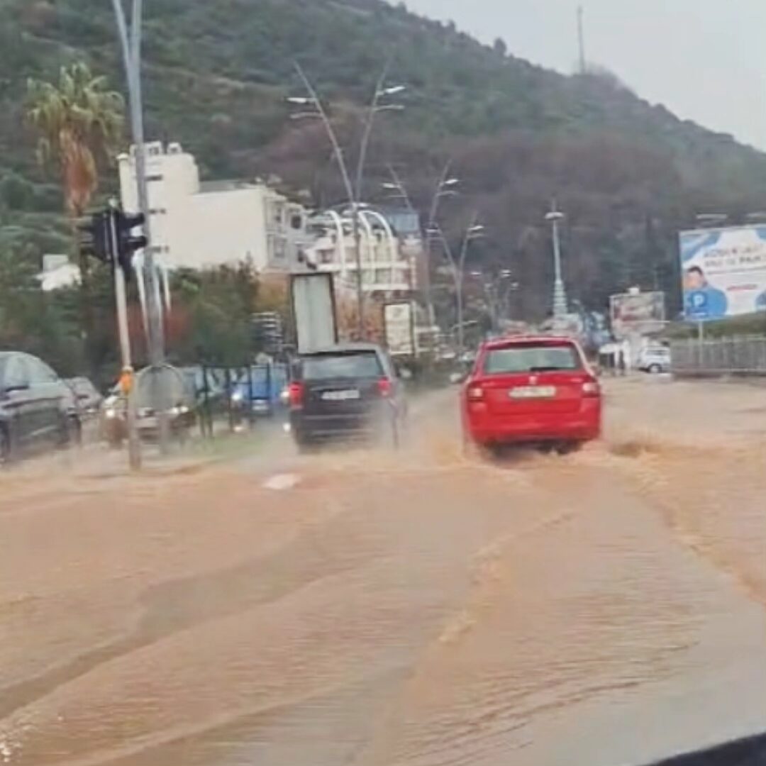 Glavni bulevar u Budvi je usled obilnih kiša prekriven vodom. Ovo je u poslednje vrijeme postala uobičajena slika iz tog grada, a uzrok je vjerovatno neplanska gradnja kojom su zatvoreni odvodni kanali. To sprječava odlazak vode sa ulica pa dolazi do plavljenja. Neophodna je spora i oprezna vožnja.