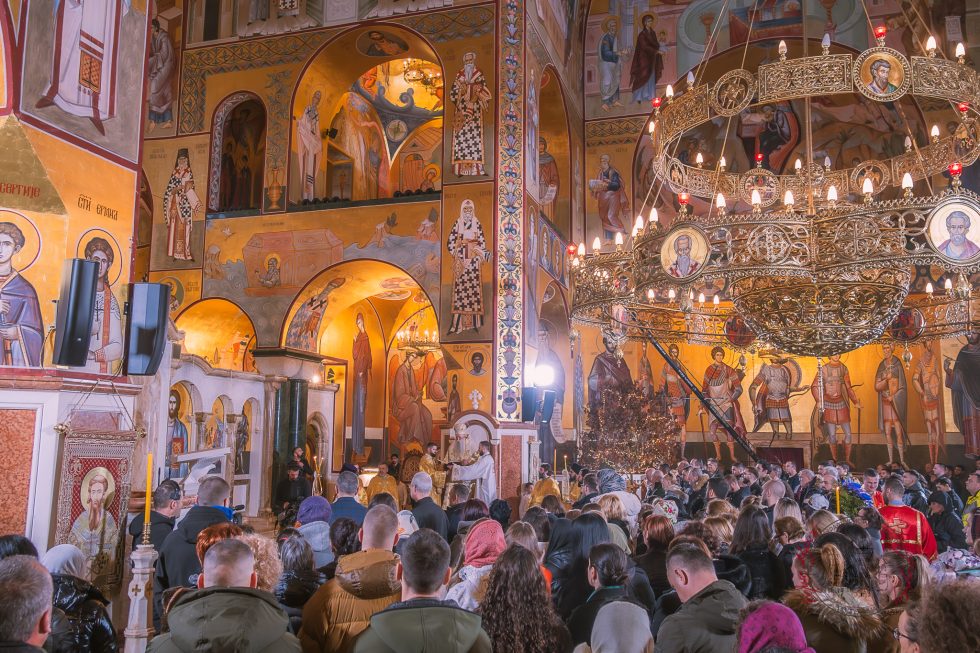 Pravoslavni vjernici danas proslavljaju Božić, jedan od najvećih i najradosnijih hrišćanskih praznika, kojim se obilježava rođenje Isusa Hrista. Jutros je služena Božićna liturgija u hramu Hristovog vaskrsenja u Podgorici. Hram je bio ispunjen velikim brojem vjernika.