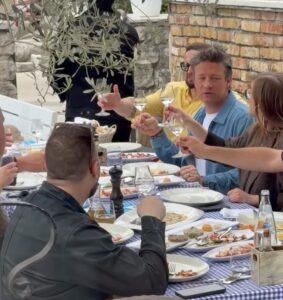 Džejmi ovih dana boravi u Tivtu. U konobi Mala barka uživao je u druženju i gostoprimstvu, a uz podršku domaćina naučio je i da kaže “Živjeli” tokom ispijanja pića.