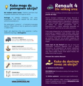 Kako bi skrenuli pažnju javnosti na ovaj problem, ali i pokazali da se velike ideje mogu roditi u malim mjestima, mještani i prijatelji Svrčuga kreću na put dug oko 5.000 kilometara – od Svrčuga do Pariza – legendarnim Renaultom 4.