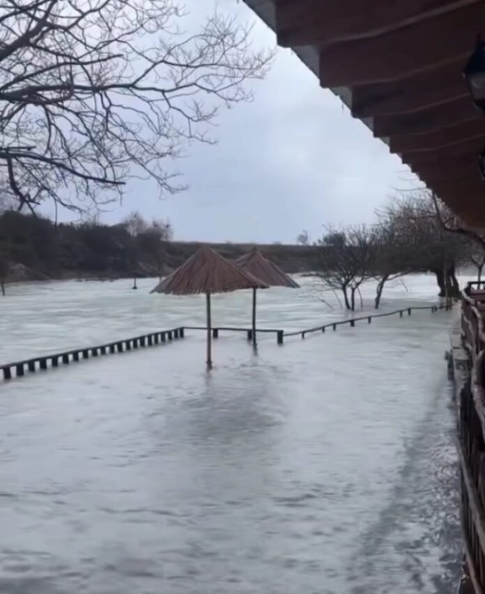 Na fotografiji se može vidjeti da je nivo rijeke Cijevne toliko porastao da je potopljena terasa restorana na Nijagarinom vodopadu.